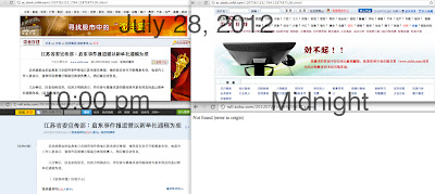 This reporter called the Jiangsu Provincial Communist Party Propaganda Department about the mass protests in Qidong against the Japanese company's pollution run-off to ask whether they would be holding a press conference. The official who answered said they need to ask the propaganda official on the scene, and would give this reporter an answer shortly. After a few minutes, he gave a response as promised, but clearly expressed that all information published by media reporting from the scene must use Xinhua's text as their basis.That report, which originally appeared here - http://kuaixun.stcn.com/content/2012-07/28/content_6413797.htm - was deleted within hours. The screenshots below show that the report was also deleted from other websites, such as Sohu and CNFOL, where it had been reposted.